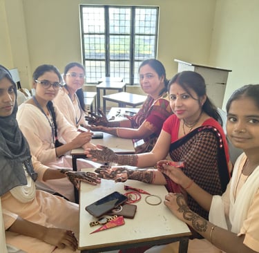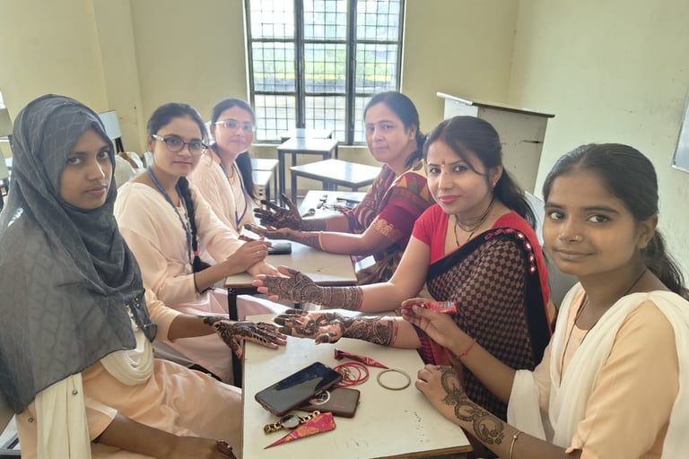 Today on 19/10/2024, a mehndi competition was organized in HRP Degree College in which 9 students participated . Name of student who got first , second and third place in the competition :