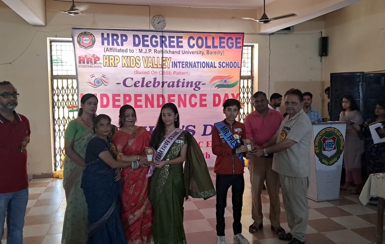Today on 17 August 2024, Fresher's Day was celebrated in HRP College to welcome the new students. Senior students welcomed the new students by putting badges on them. Taki was selected as Mr. Fresher and Mahi Dangwal as Miss Fresher in the college . The program was presided over by Dr. Vandana Sharma .
